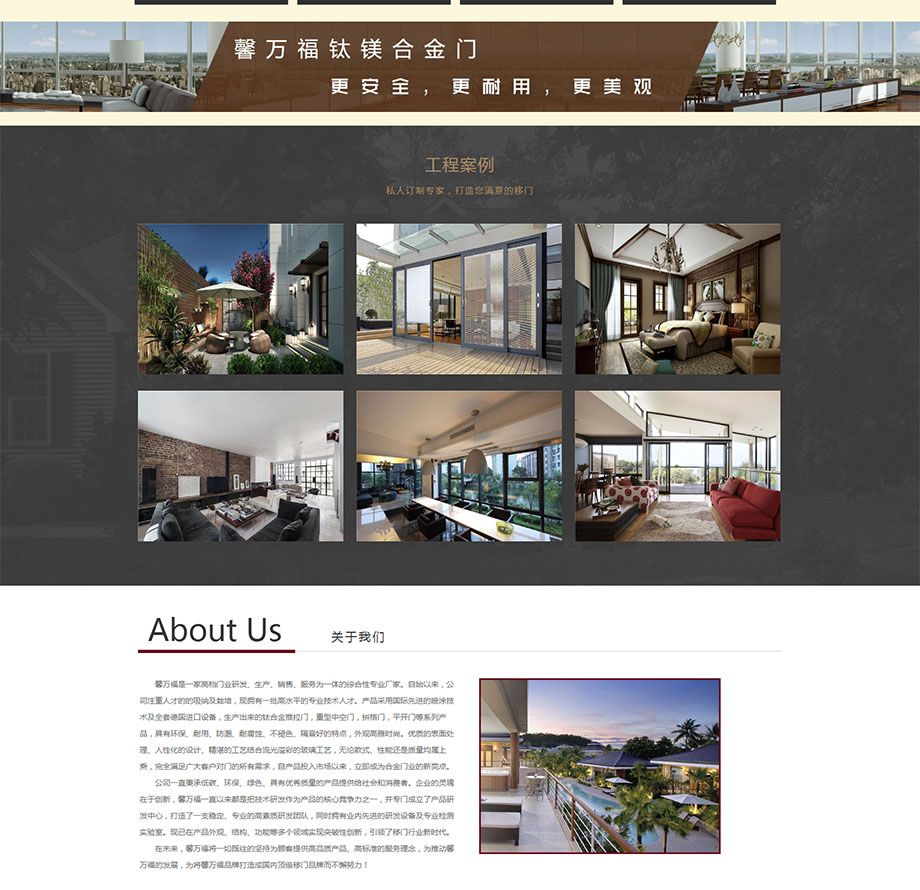 案例介紹:馨萬福是一家高檔門業(yè)研發(fā)、生產、銷售、服務為一體的綜合性專業(yè)廠家。自始以來,公司注重人才的的吸納及栽培,現(xiàn)擁有一批高水平的專業(yè)技術人才。產品采用國際先進的噴涂技術及全套德國進口設備,生產出來的鈦合金推拉門,重型中空們,拼格門,平開門等系列產品,具有環(huán)保、耐用、防潮、耐腐蝕、不褪色、隔音好的特點,外觀高雅時尚。優(yōu)質的表面處理、人性化的設計、精湛的工藝結合流光溢彩的玻璃工藝,無論款式、性能還是質量均屬上乘,完全滿足廣大客戶對門的所有需求,自產品投入市場以來,立即成為合金門業(yè)的新亮點
